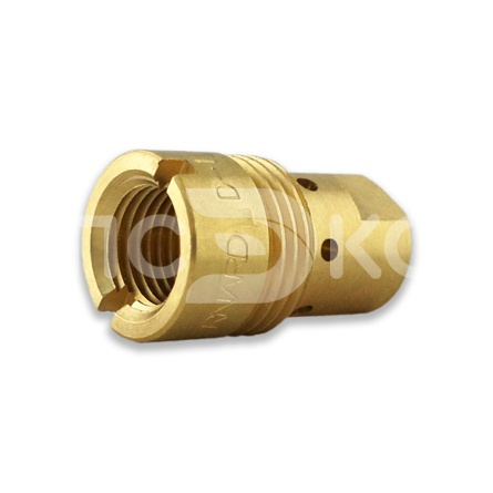 Компонент для сварочных горелок Miller Electric/Bernard с системой быстрой замены расходников Centerfire. Изготовлен из термостойкой меди, обеспечивает равномерное распределение защитного газа и стабильный токоподвод к токосъемному наконечнику. Совместим с горелками Bernard Q-Gun и аналогами.