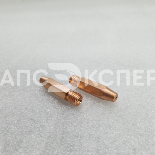 Усиленный контактный наконечник из сплава меди, хрома и циркония (CuCrZr) для полуавтоматической сварки. Предназначен для работы со сплошной и порошковой проволокой диаметром 1.2–1.6 мм. Длина 35 мм и резьба М8×1.2 обеспечивают совместимость с горелками стандарта RF-45 и аналогами.
